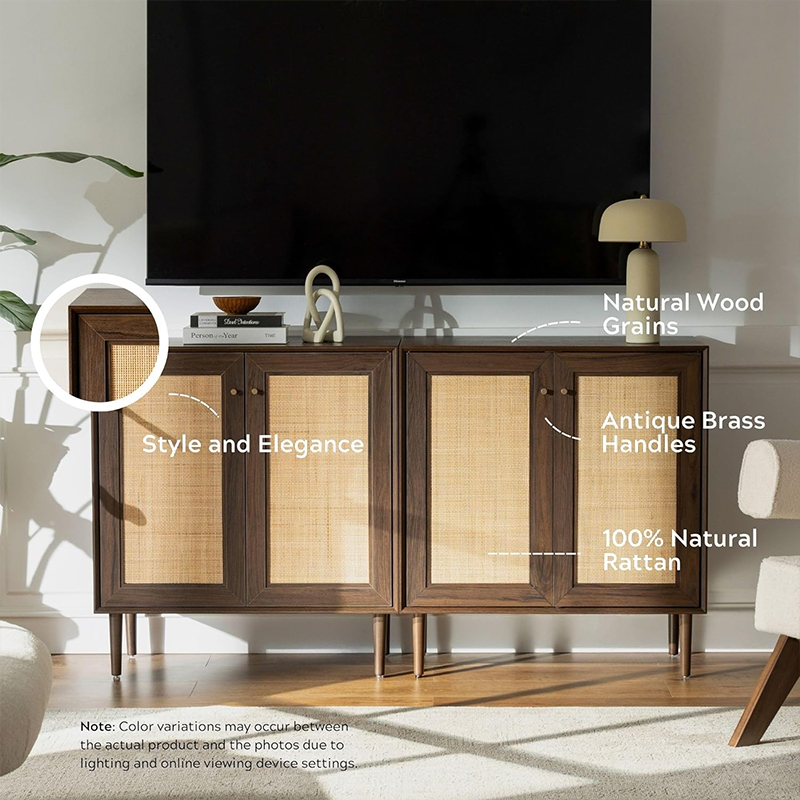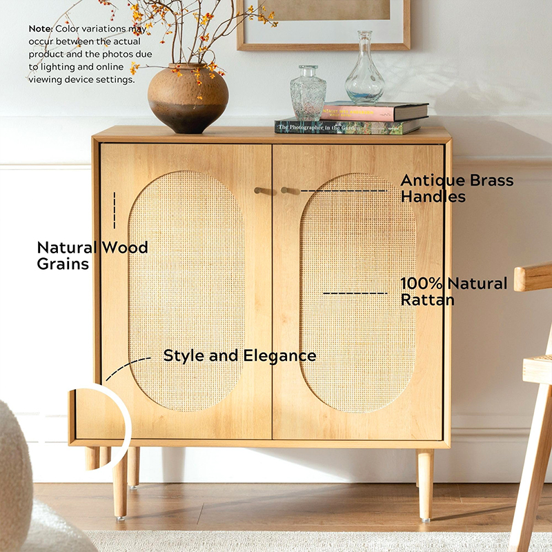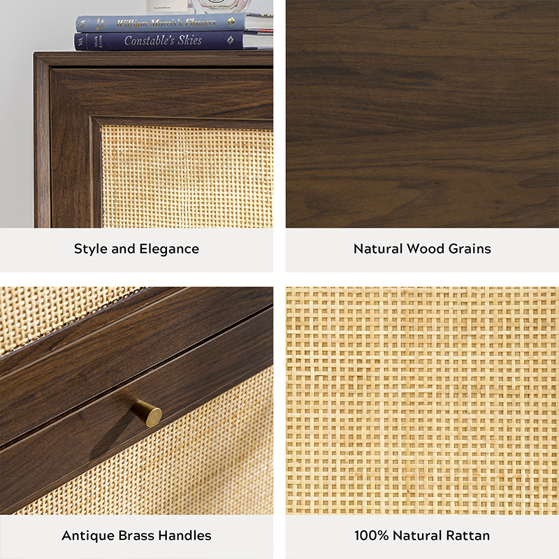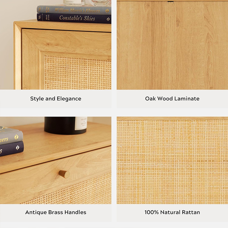 | Materia | Solidum lignum tabula cum MDF metam et realem rattan trim |