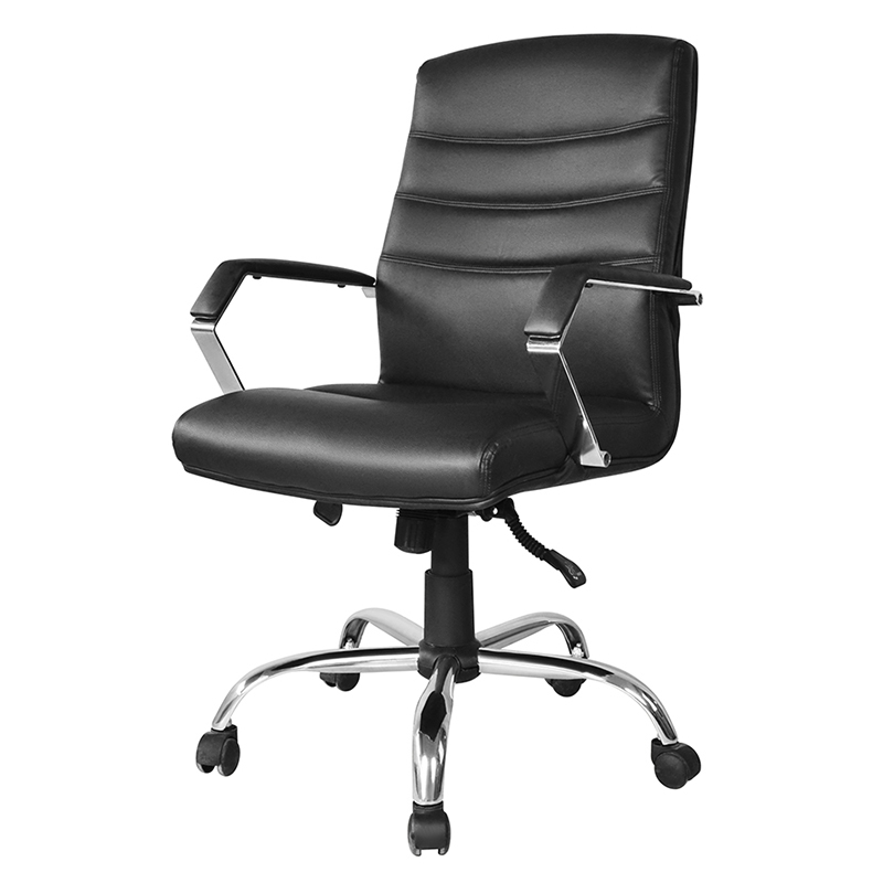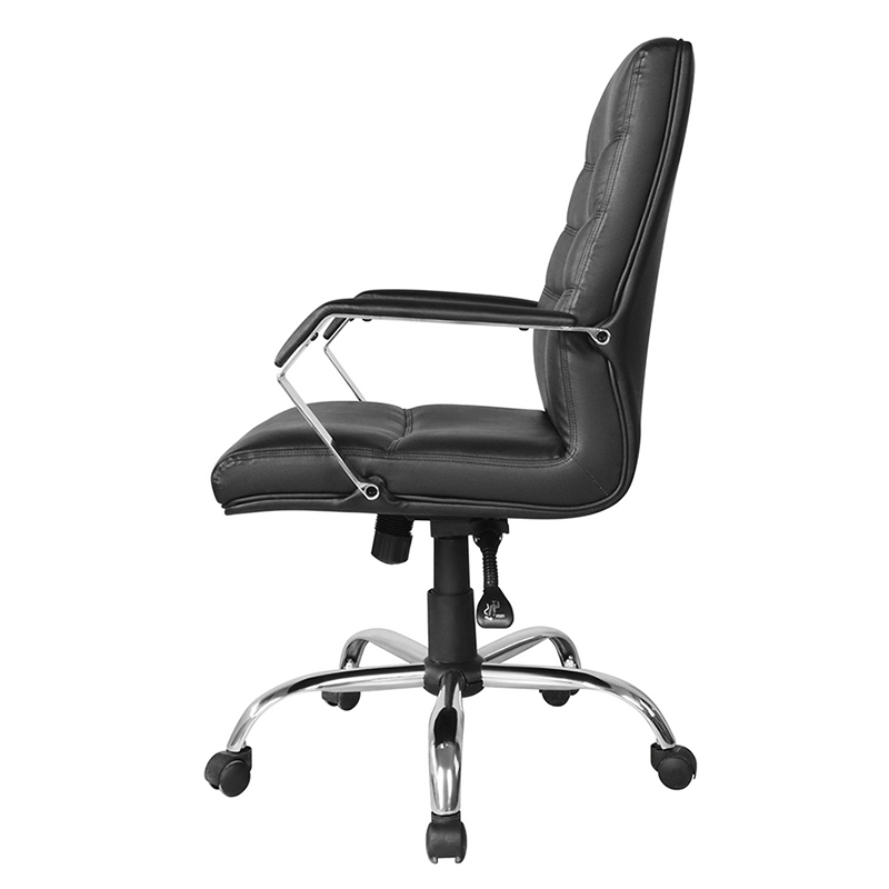 Sella in altum corium nigrum evecta est, quod ei nitidae ac professionis species dat. Sedes padded et backrest consolationem additam praebent, sessiones sessiones hominum diuturnas faciens consolatorias. Cum alto backrest, cathedra praebet auxilium lumborum bonum, reducendo periculum doloris et molestiae.